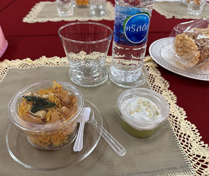 このエリアの特徴は住民参加型のコミュニティ再建が行われ、スラム住民自身が協同組合を形成し、ローンを通じて住宅を整備すると共に、自立(インフォーマル経済を含む)が視野に入れられたことです。スアンプルーではこれらの運動を担った方の歓待を受けましたが、皆さん元気な女性たちでした。地域で販売され、収入に繋げているスイーツをごちそうになりました。
